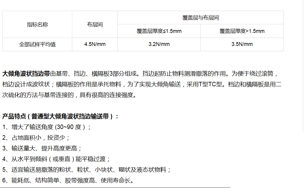 大傾角輸送帶